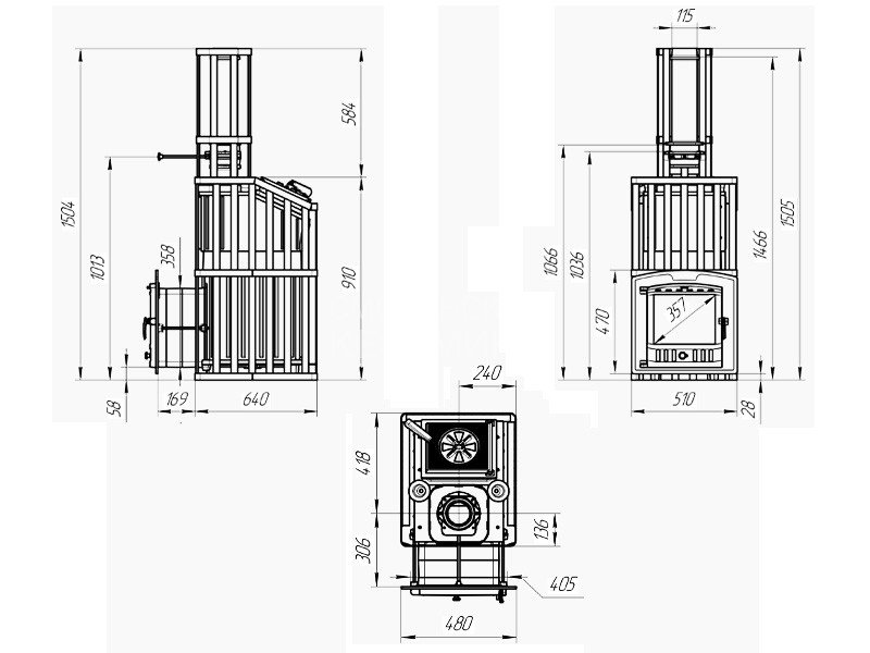 Габариты топочной части, (ДхШхВ) мм: 455х341х595