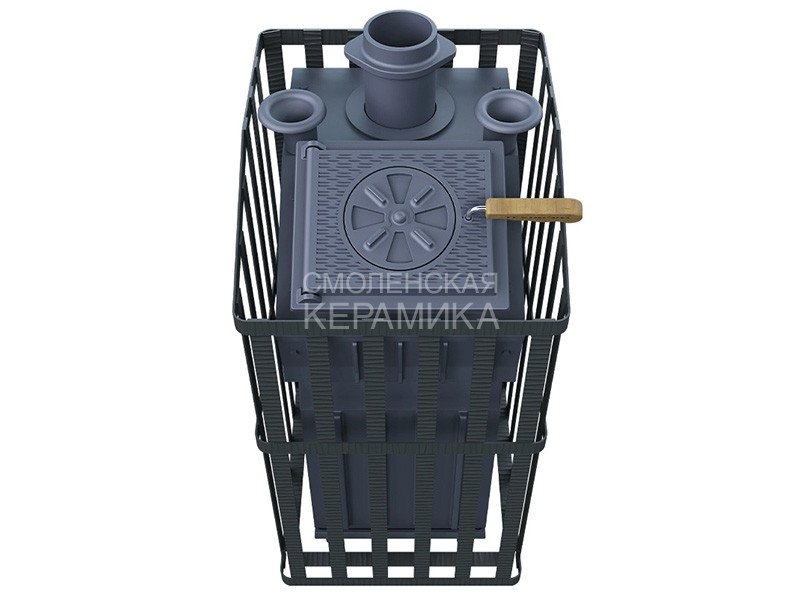 Чугунная банная печь в комплектации Ураган для парного помещения объемом 24 м³.