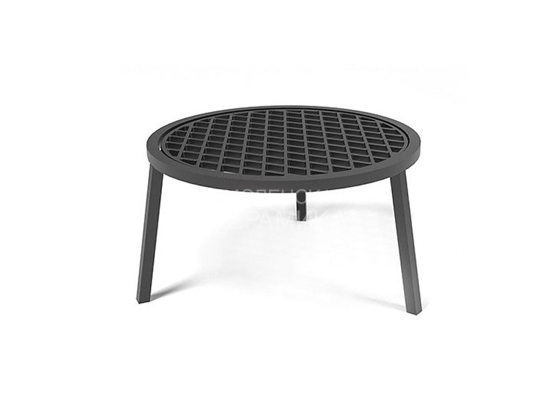 Размеры подставки рассчитаны под круглую Решетку гриль Везувий Ø 450 мм. Приспособление изготовлено из надёжного стального профиля и легко выдерживает вес чугунной решётки. Вес самой подставки – 5,4 кг.