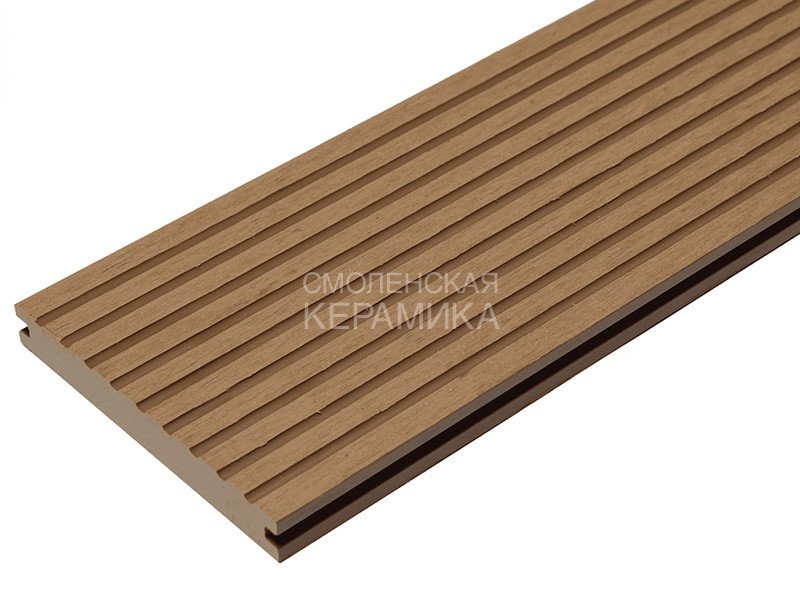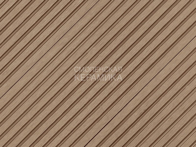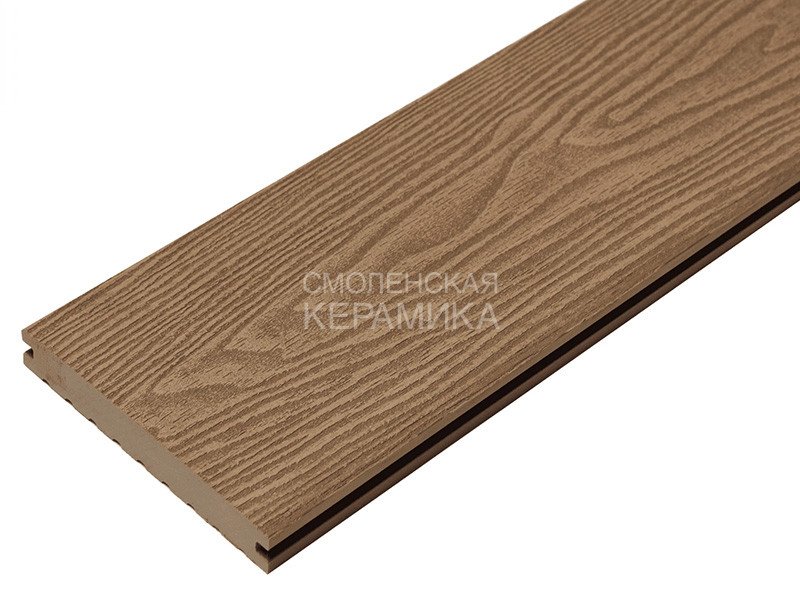 Натуральный коричневый цвет террасной доски с древесной текстурой добавит выразительности и респектабельности любому объекту, подчеркнет продуманный стиль оформления. Благодаря устойчивости материала к влаге, перепадам температур и ультрафиолету покрытие прослужит долгое время.