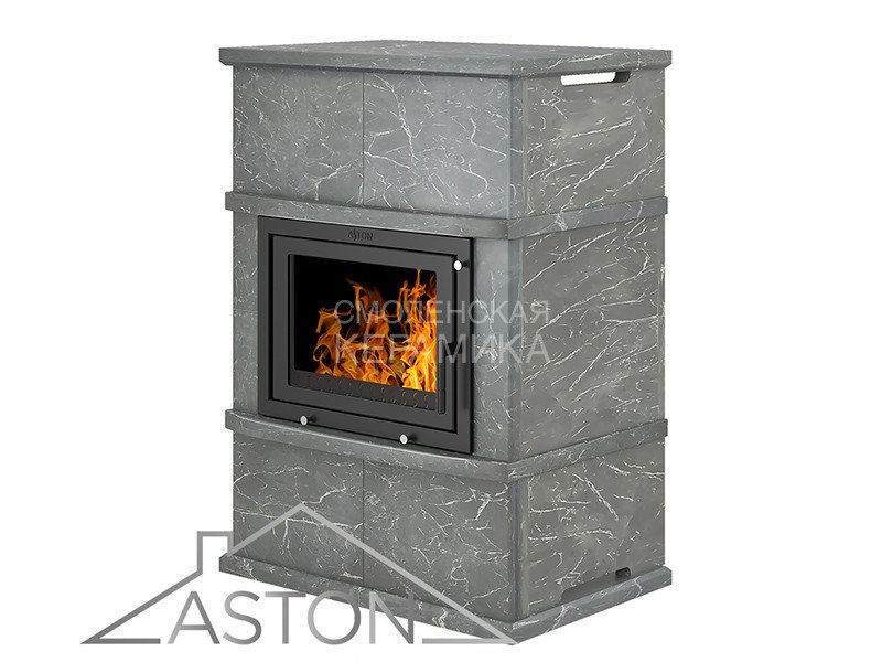 Облицовка для каминной топки АСТОН 600 сделана из натурального талькохлорита. Талькохлорит быстро прогревается, хорошо держит тепло и обладает свойством медленно и равномерно отдавать энергию в окружающее пространство. Облицовка из этого камня долго остаётся тёплой даже после окончания работы каминной топки. Вес облицовки 280 килограммов. Толщина плиты 4 см.