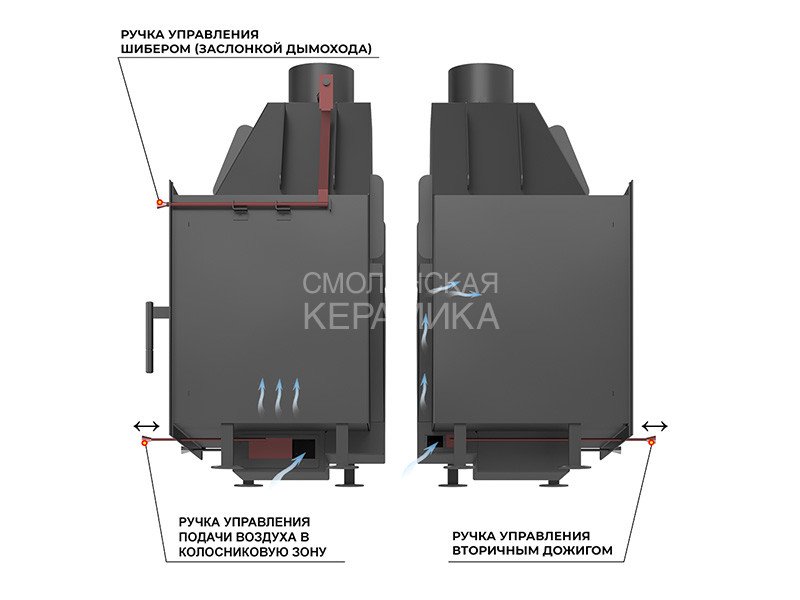 Материал футеровки топки: вермикулитовые плиты, 30 мм