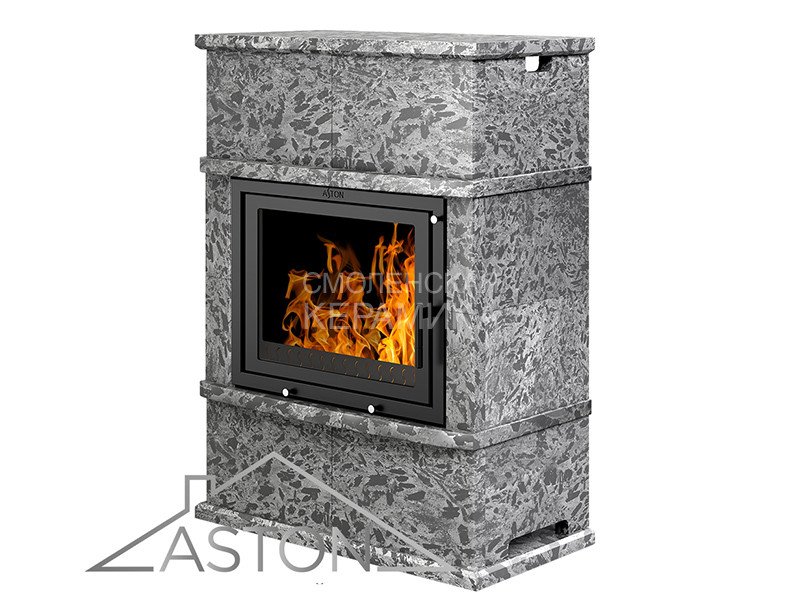 Облицовка для каминной топки АСТОН 700 сделана из натурального пироксенита. Пироксенит быстро прогревается, хорошо держит тепло и обладает свойством медленно и равномерно отдавать энергию в окружающее пространство. Облицовка из этого камня долго остаётся тёплой даже после окончания работы каминной топки.
