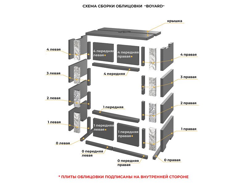 Облицовка сделана из натурального камня, который быстро прогревается, хорошо держит тепло и обладает свойством медленно и равномерно отдавать энергию в окружающее пространство.