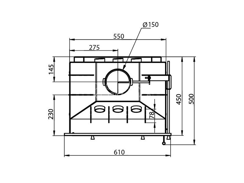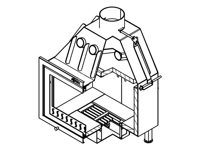 Трубы, размещённые над топочной камерой в области дымосборника, увеличивают скорость движения нагретого воздуха и усиливают конвекционные возможности каминной топки АСТОН 600.
