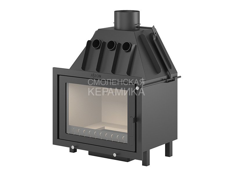 Стальная каминная топка АСТОН 600 рассчитана на прогрев помещений объёмом до 210 м³. Топочная камера изготовлена из особо прочной котловой стали, рассчитана на пристенное размещение. Вермикулитовая облицовка внутри топочного пространства обеспечивает максимальную теплоёмкость топки. Вермикулит хорошо набирает энергию во время горения дров и постепенно и равномерно отдаёт тепло после окончания горения. При горении топлива вермикулит защищает стальные стенки от прогорания и перегрева.
