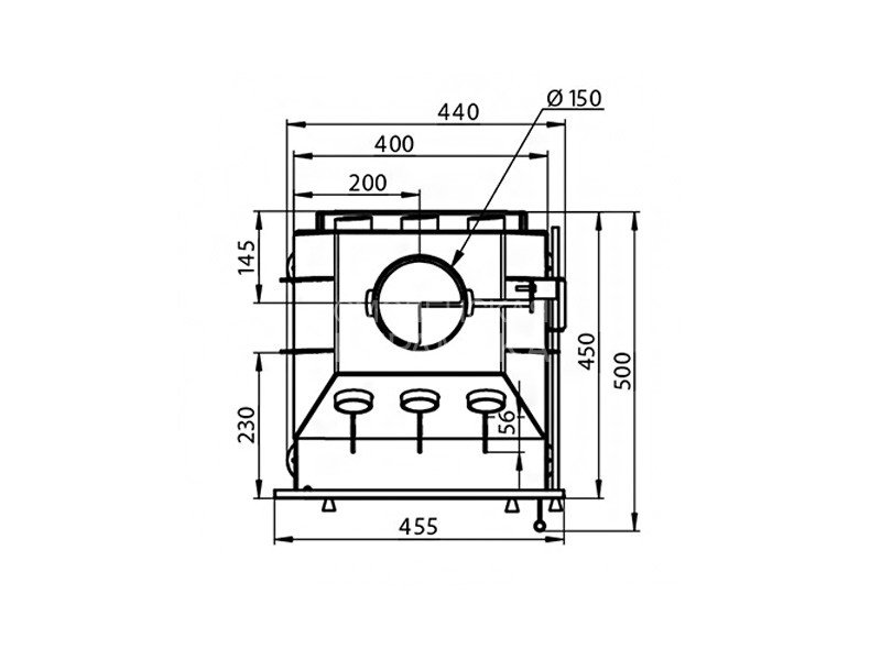 Топочная камера изготовлена из особо прочной котловой стали, рассчитана на пристенное размещение. Топка изнутри облицована вермикулитом, что обеспечивает максимальную теплоёмкость печи. Вермикулитовая облицовка защищает стены от прогорания и избыточного нагрева.