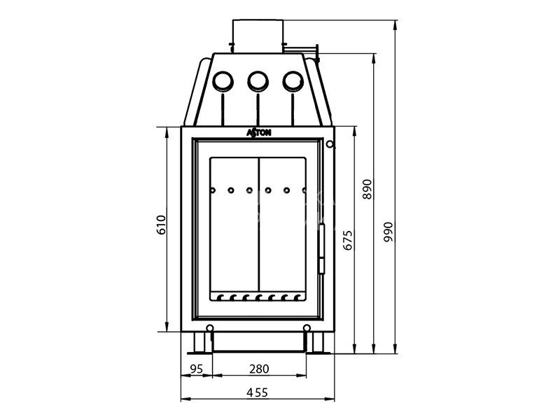 Трубы, размещённые над топочной камерой в области дымосборника, увеличивают движение нагретого воздуха и усиливают конвекционные возможности каминной топки АСТОН ВЕРТИКАЛЬ.