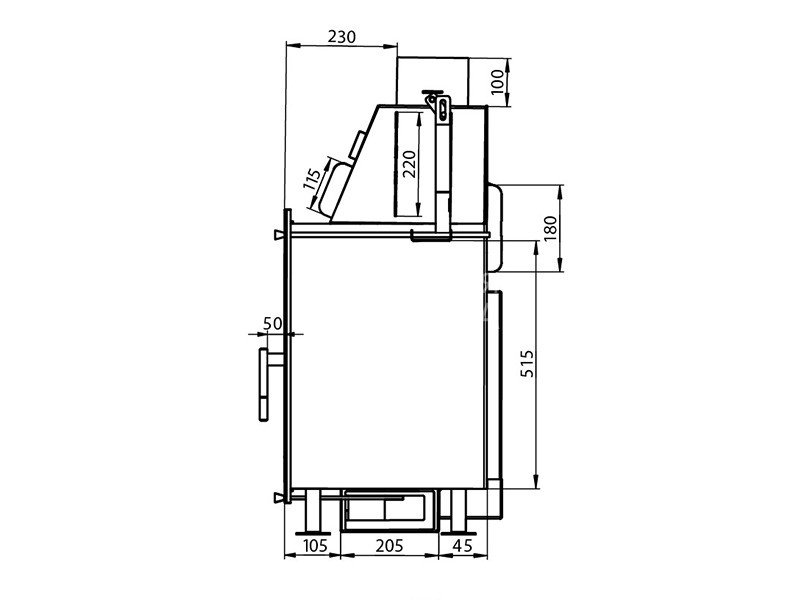 Топка оборудована системой вторичного дожига дымовых газов, которая позволяет получить максимум энергии при горении дров. Каналы вторичного дожига расположены на задней стенке топочной камеры непосредственно в вермикулитовой облицовке. Управление вторичным дожигом вынесено на переднюю панель топки.