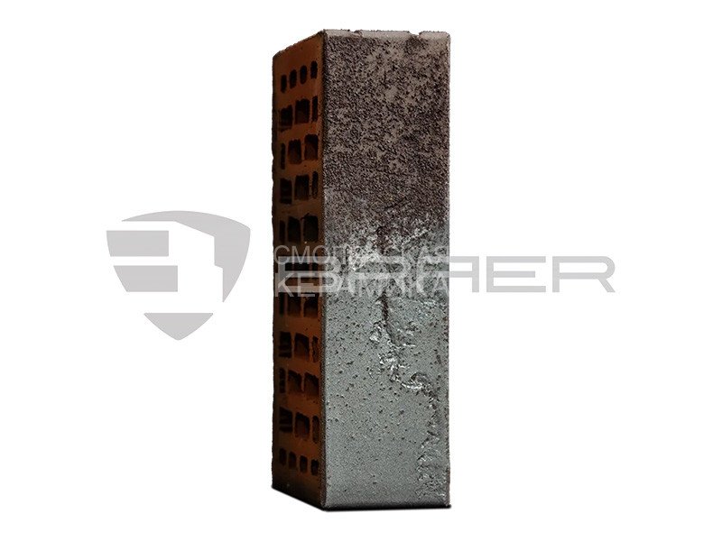 Аэрографы наносят суспензию из особой глины тонкого помола и органических пигментов на лицевые поверхности кирпича. Далее он отправляется под инфракрасный излучатель, а затем проходит стандартную процедуру обжига. В печи при t >1000 ˚С суспензия спекается с лицевыми гранями кирпича, образуя прочное покрытие.