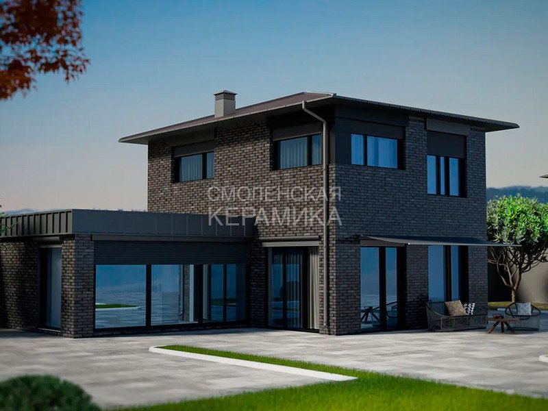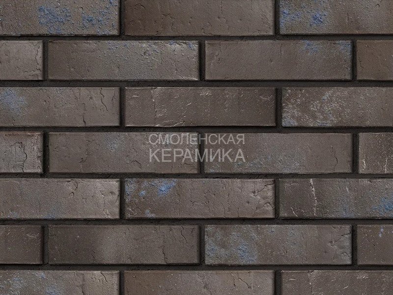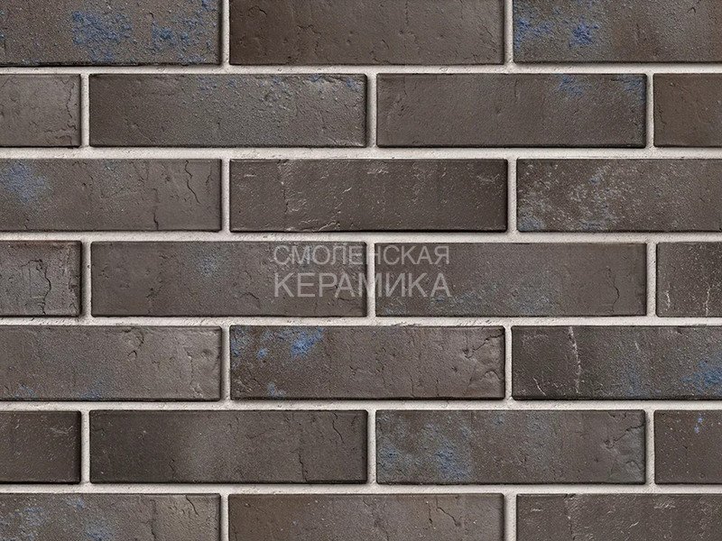 Оригинальное сочетание ореховых и графитовых оттенков, придаёт кирпичной кладке особую выразительность. Хаотичное нанесение приглушенного сине-серого цвета придает легкий акцент и изящно подчеркивает оригинальность фасада, делая его особенным.
