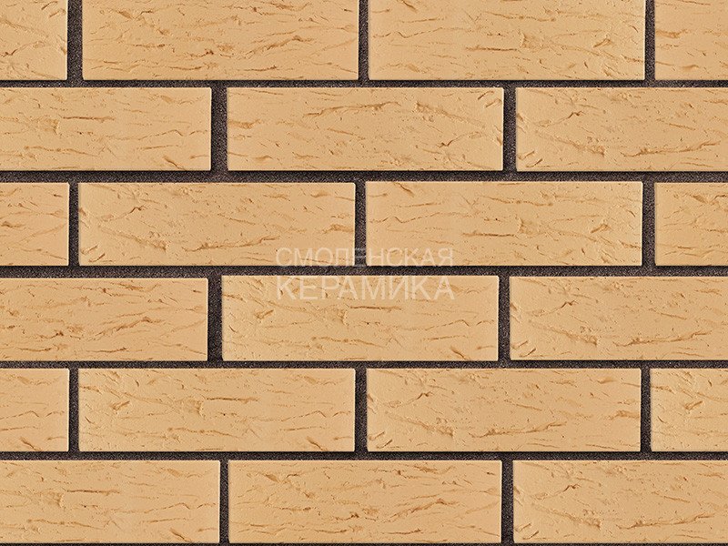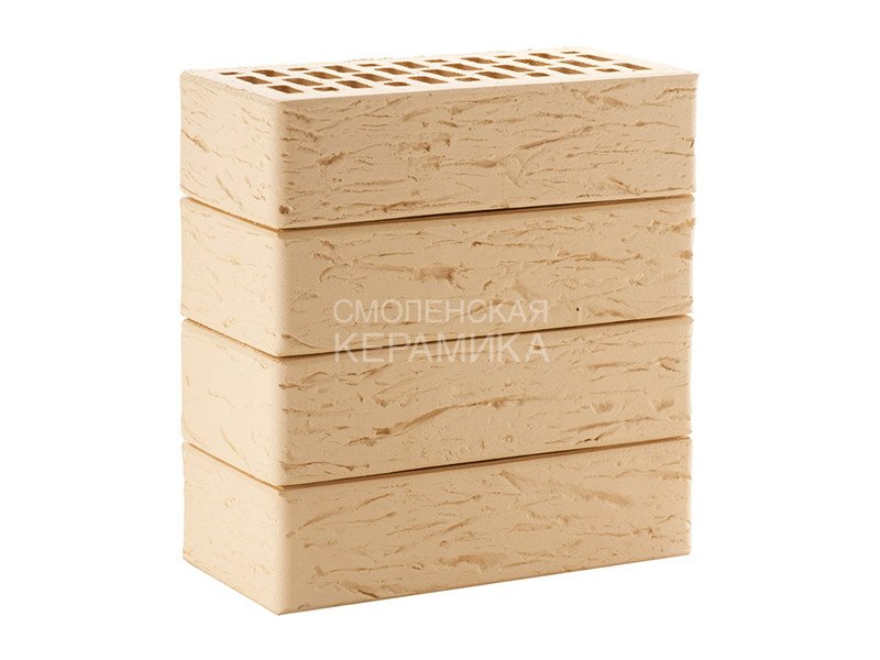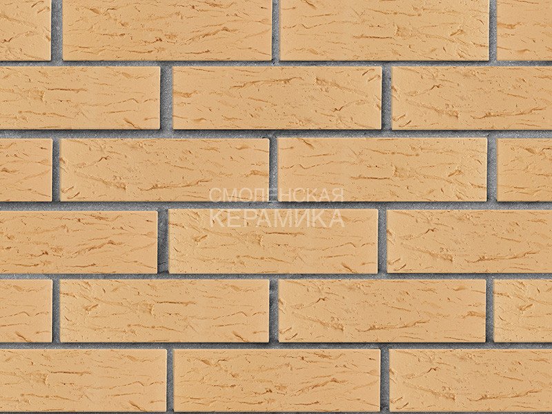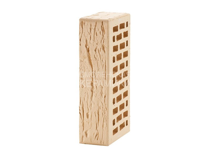 Керамический кирпич ЛСР лицевой (облицовочный) пустотелый рустик одинарного формата 1NF имеет размер 250*120*65мм. Данный кирпич пшеничного цвета, с рустированной поверхностью со сколотыми (рваными) краями лицевой части. Применяется для облицовки фасадов, наружных и внутренних стен зданий, заборов. Кирпич керамический изготавливается из глины путём обжига.