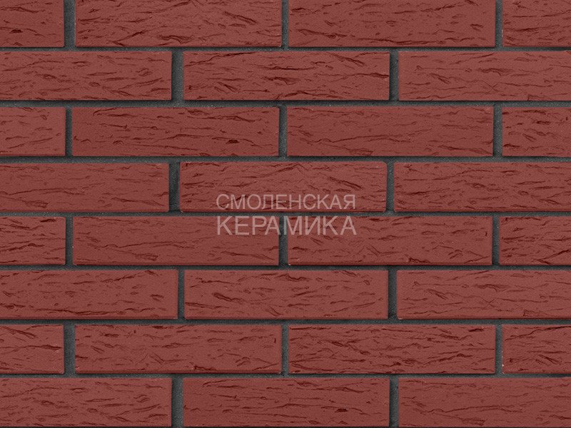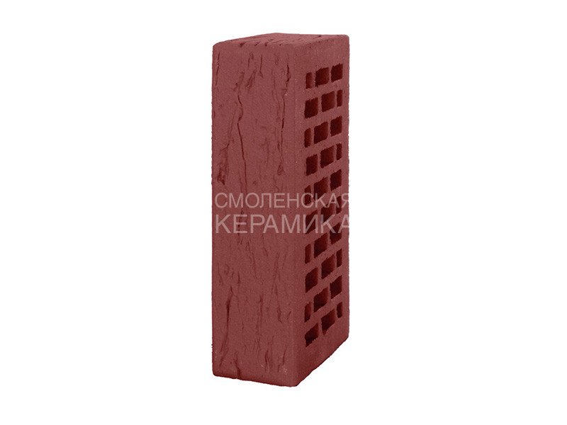 Керамический кирпич ЛСР лицевой (облицовочный) пустотелый рустик одинарного формата 1NF имеет размер 250*120*65мм. Данный кирпич винного цвета, с рустированной поверхностью со сколотыми (рваными) краями лицевой части. Применяется для облицовки фасадов, наружных и внутренних стен зданий, заборов. Кирпич керамический изготавливается из глины путём обжига.