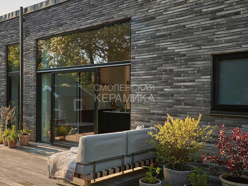 Клинкерный кирпич ригель (узкий) формата RT 152 Ultima Handstrich ziegel из серии ULTIMA производится на заводе RANDERS TEGL в Дании форматом и размером - ECO-Riegel 468X50X38 мм, имеет пестрый серо-черный цвет с подпалами угольного нагара. Применяется при возведении фасадов зданий, заборов, а так же в оформлении печей, каминов. 52Формат с приставкой ECO - является экономичным, это тонкий кирпич, т.е. половинчатый или распиленный на две части.