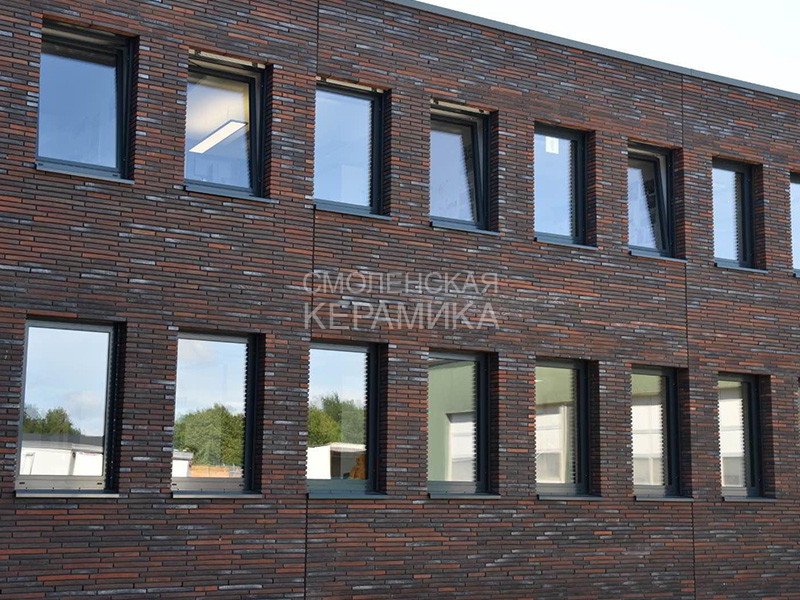 Клинкерный кирпич ригель (узкий) формата RT 158 Ultima Handstrich ziegel из серии ULTIMA производится на заводе RANDERS TEGL в Дании форматом и размером - ECO-Riegel 468X50X38 мм, имеет красно-коричневый цвет с яркими черными включениями угольного нагара, который делает этот цвет клинкерного облицовочного кирпича пестрым. Применяется при возведении фасадов зданий, заборов, а так же в оформлении печей, каминов. Формат с приставкой ECO - является экономичным, это тонкий кирпич, т.е. половинчатый или распиленный на две части.