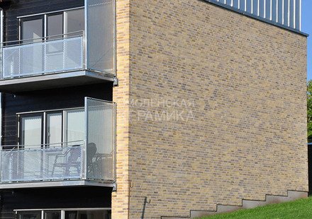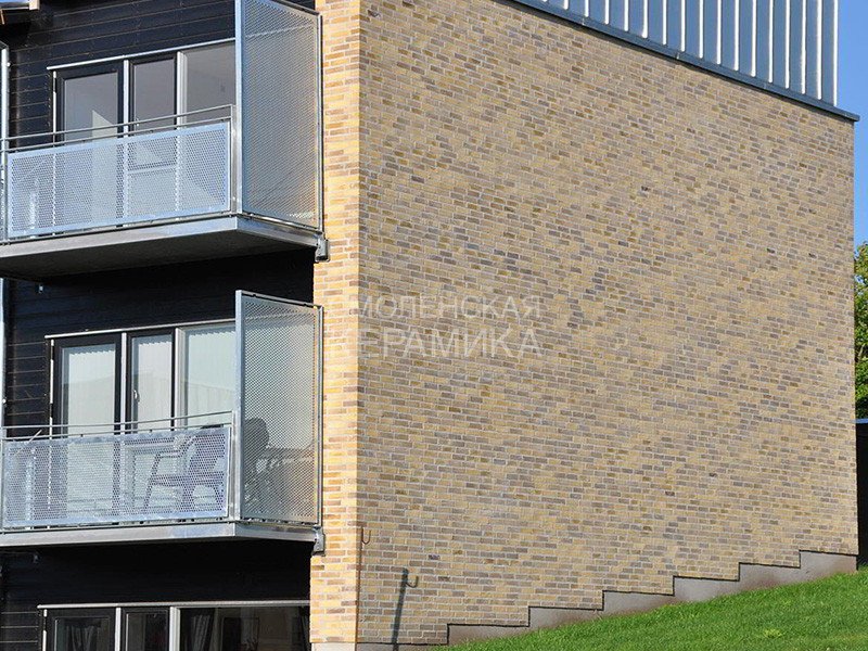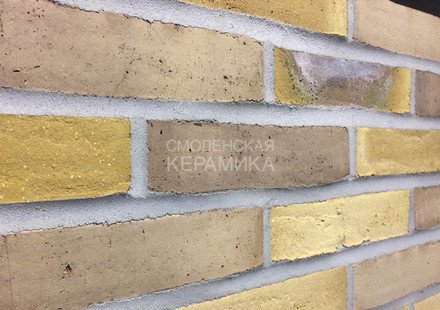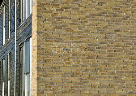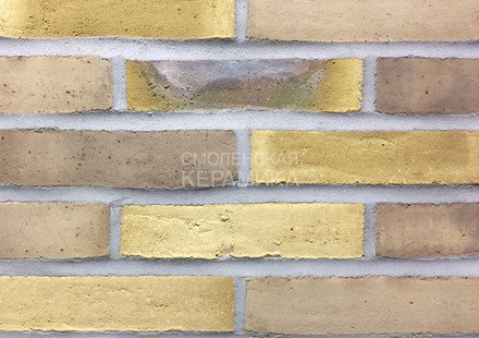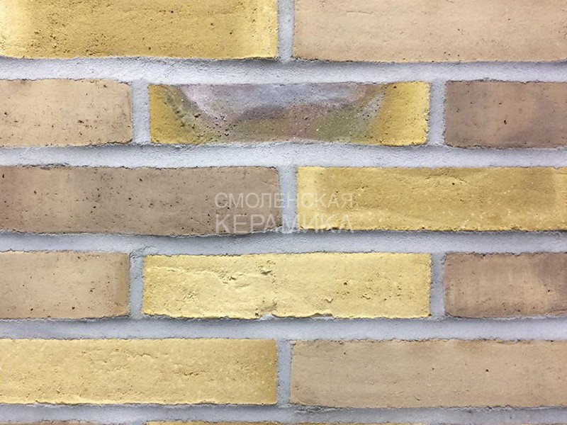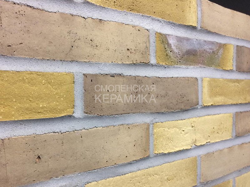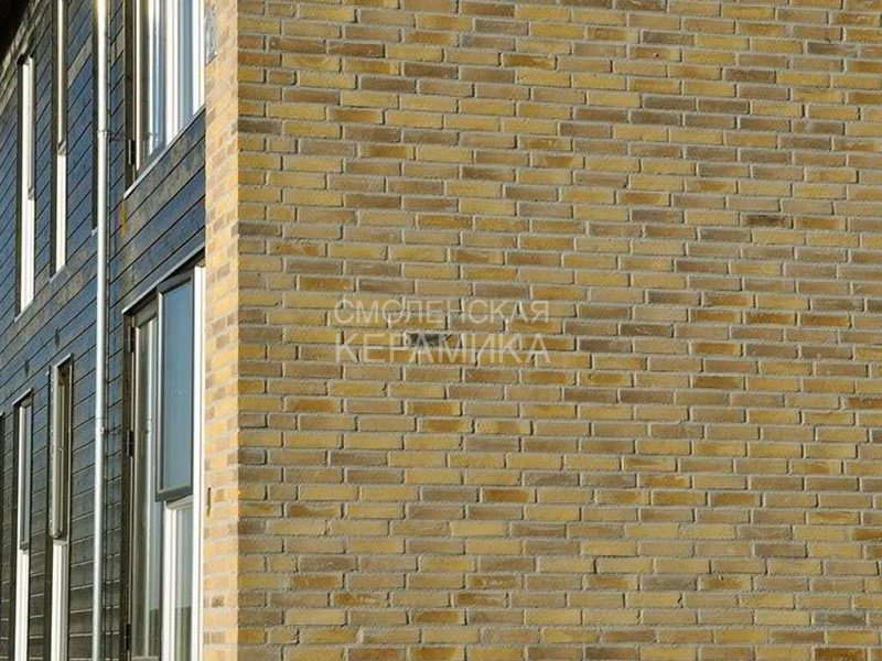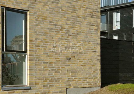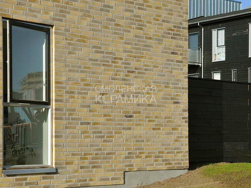 Клинкерный состаренный кирпич RT 570 Fusion Handstrich ziegel из серии FUSION производится на заводе RANDERS TEGL в Дании форматом и размером - DNF 228X108X54 мм, имеет желтый оттенок с коричневыми подпалами, пестрый и яркой имитацией состаренного кирпича. Применяется при возведении фасадов зданий, заборов, а так же в оформлении печей, каминов.