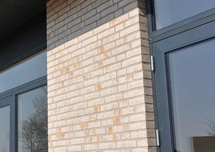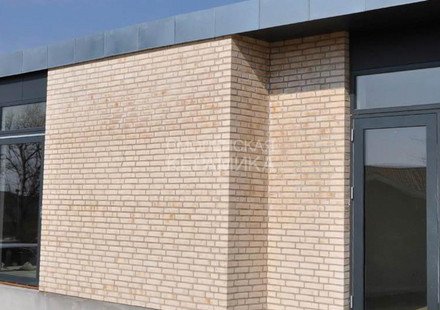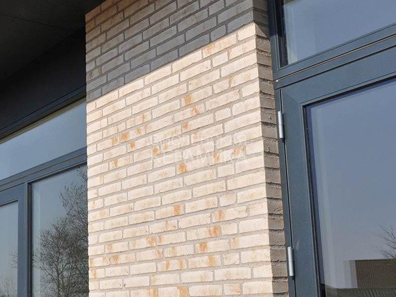 Клинкерный состаренный кирпич RT 101 Weibgelb Genova Handstrich ziegel из серии PRIMA производится на заводе RANDERS TEGL в Дании форматом и размером - DNF 228X108X54 мм, имеет пестрый бело-желтый цвет с легкими оттенками и яркой имитацией состаренного кирпича. Применяется при возведении фасадов зданий, заборов, а так же в оформлении печей, каминов. Формат с приставкой ECO - является экономичным, это тонкий кирпич, т.е. половинчатый или распиленный на две части.