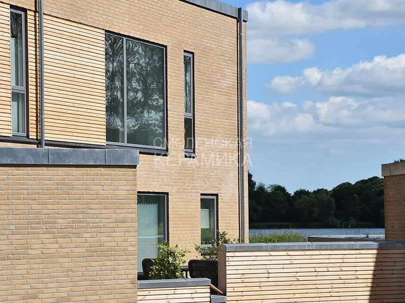Клинкерный состаренный кирпич RT 474 Gelbbraun Torino Handstrich ziegel из серии PRIMA производится на заводе RANDERS TEGL в Дании форматом и размером - DNF 228X108X54 мм, имеет пестрый желто-бежевый цвет с легкими оттенками и яркой имитацией состаренного кирпича. Применяется при возведении фасадов зданий, заборов, а так же в оформлении печей, каминов. Формат с приставкой ECO - является экономичным, это тонкий кирпич, т.е. половинчатый или распиленный на две части.