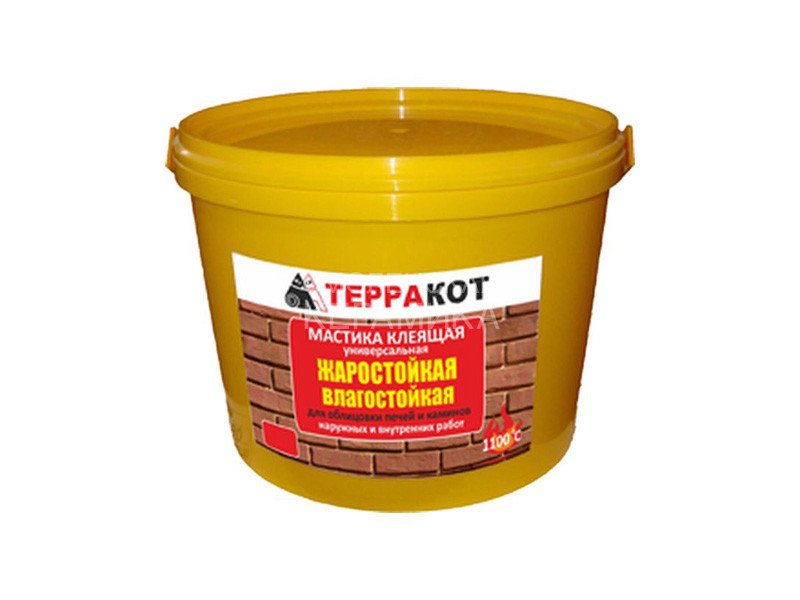 Мастика «Терракот» используется для проведения ремонтных, отделочных и реставрационных работ, приклеивания облицовочных (плитка, природный камень, термопанели), конструкционных (кирпич, блок) и защитных (минвата, пенополистирол) материалов на нагреваемых объектах (печи домовые и банные, камины, печи-барбекю, котлы водогрейные, жаростойкие банные экраны, теплый пол и т. п.).