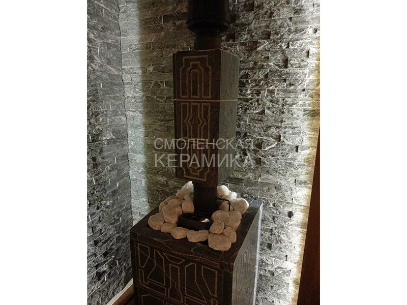 Труба дымохода является источником сильного теплового и инфракрасного излучения. Облицовка натрубная защищает от излучения, уменьшая поверхность открытой трубы. Прекрасно сочетается с «Атмосферой» в облицовке.