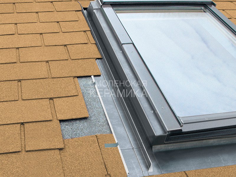 Оклад состоит из четырех основных элементов. Нижний элемент имеет изнутри специальное клейкое покрытие, которое обеспечивает надежное соединение оклада с кровельным материалом.