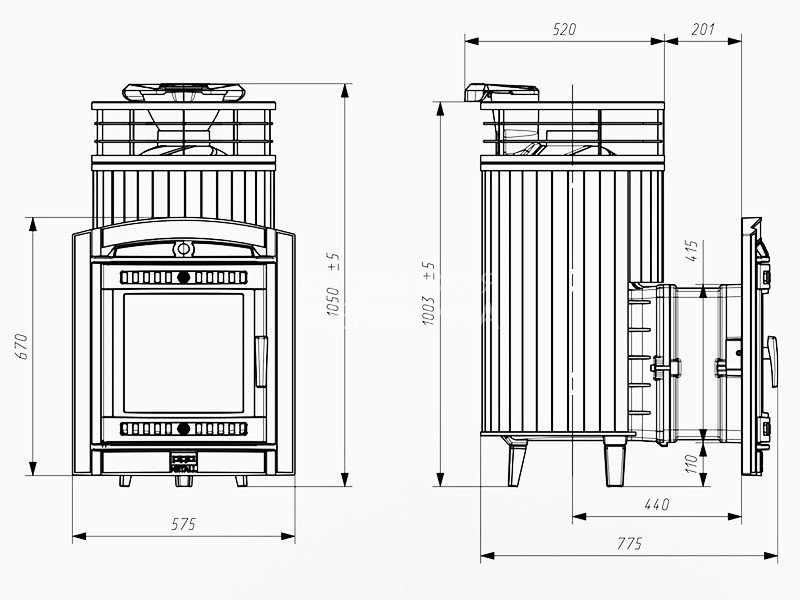 Толщина топки: 9-11 мм