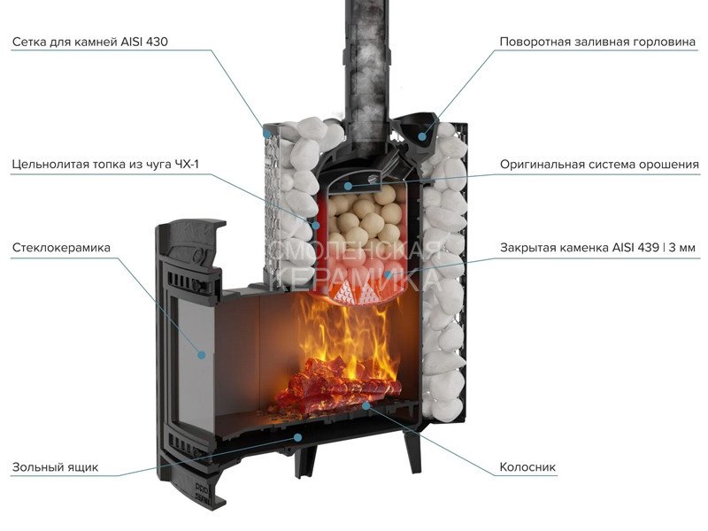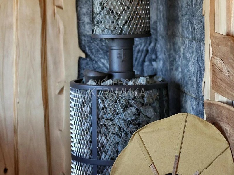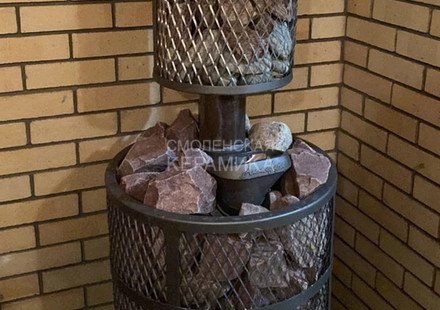 Компактная и экономичная модель. Кожух печи изготовлен в виде сетки из стали и полностью заполняется природными камнями, обеспечивая высокую динамику нагрева парильного помещения. Объем топки - 54 литра