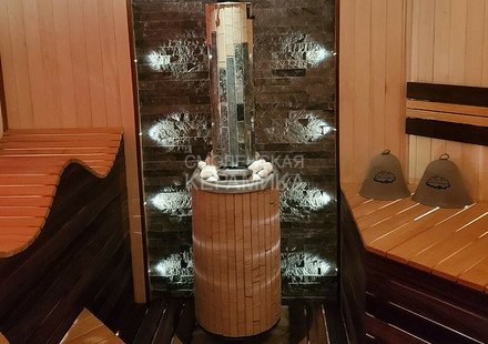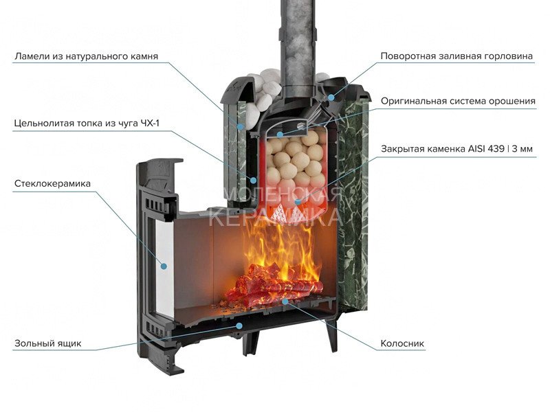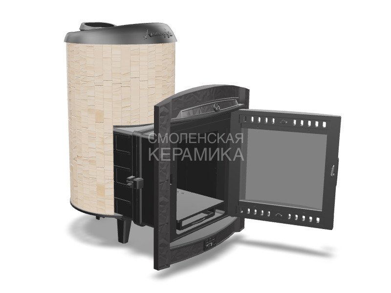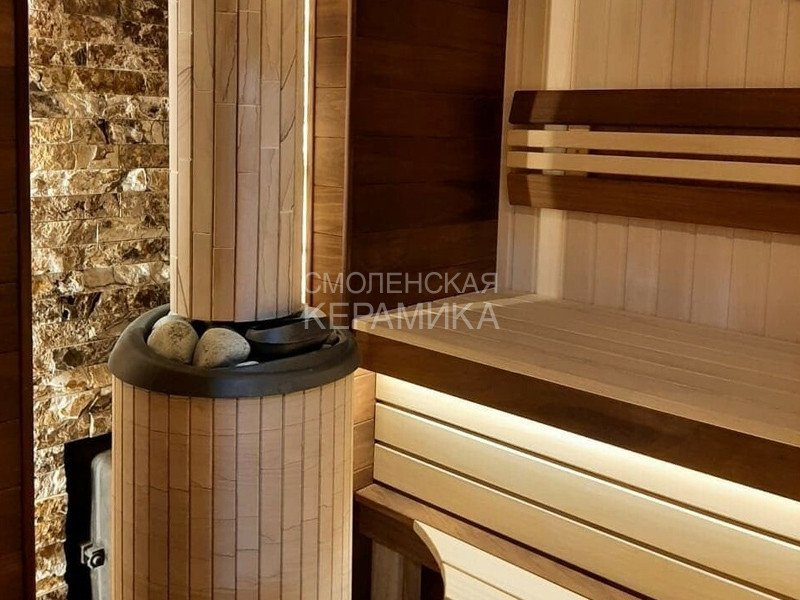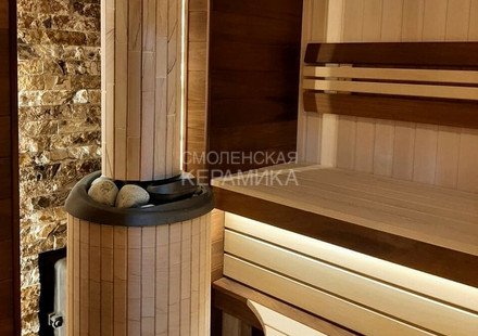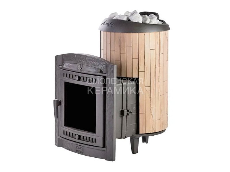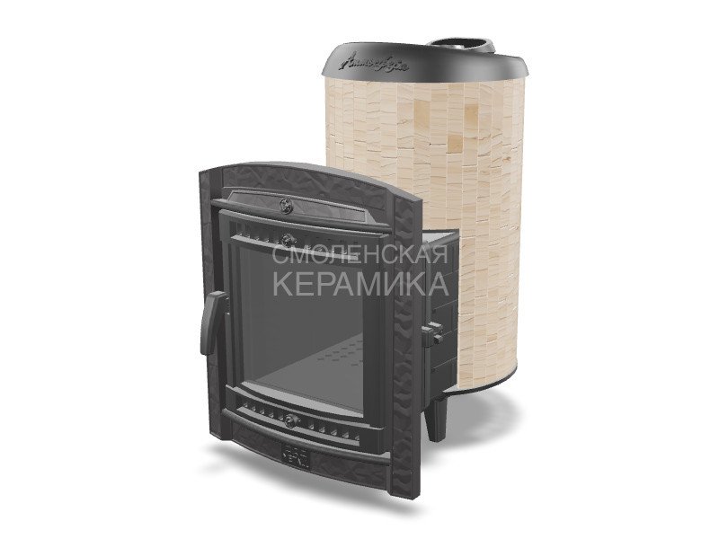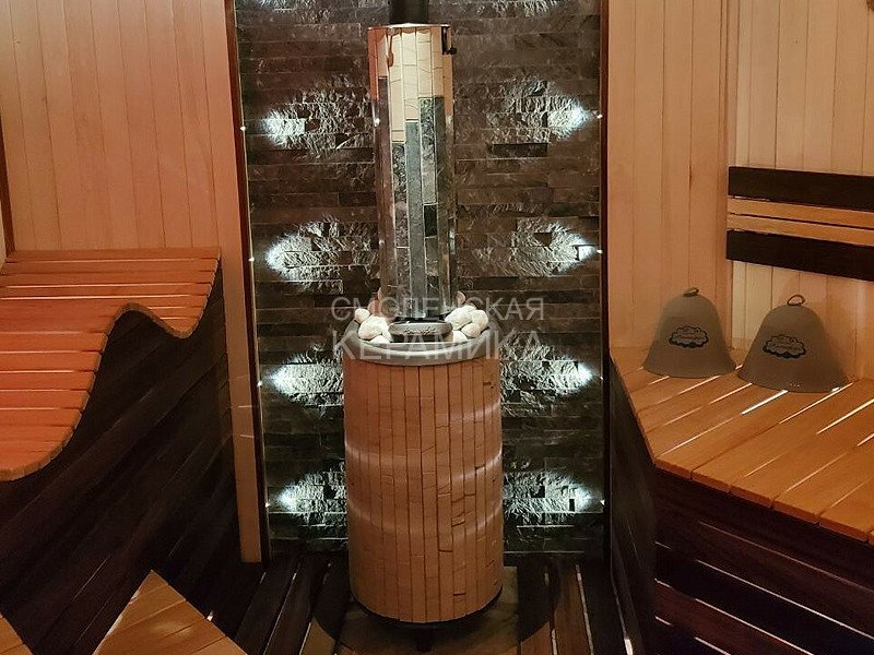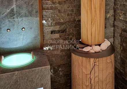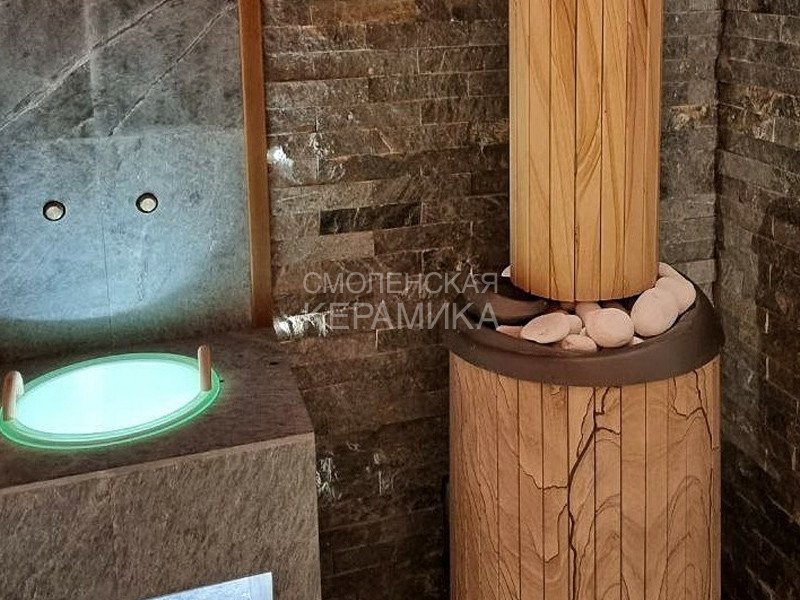 Печь банная "Атмосфера L" в ламелях "Окаменевшее дерево" наборный рисунок