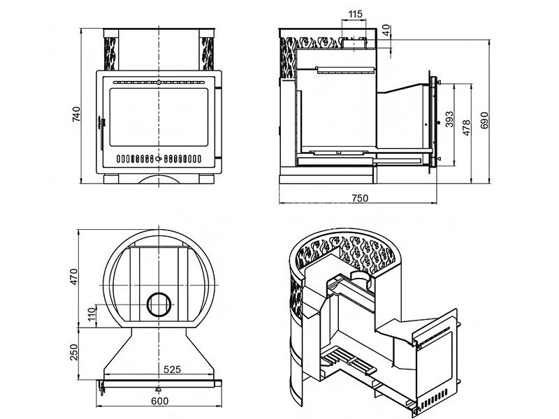 Чугунные детали - колосник и пламегаситель, не меняют своей геометрии во время топки, хорошо противостоят высокой температуре.