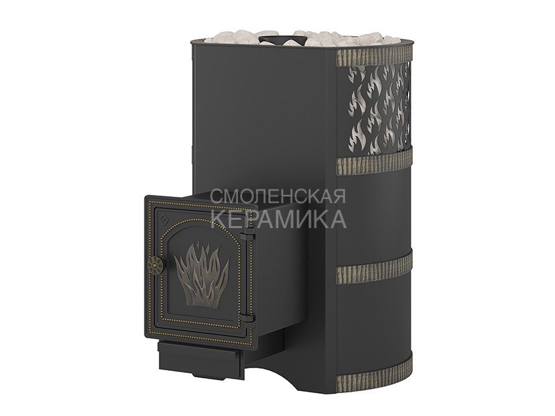 Кожух из стального листа и кованых стальных колец предназначен для обеспечения конвекции устройства открытой каменки и дополнительно защищает парящихся от жёсткого инфракрасного излучения.