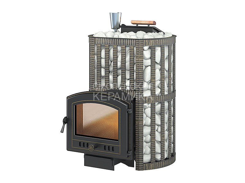 Банная чугунная печь Ураган Ковка 22 (224) укомплектована чугунной герметичной дверцей Везувий 224 с жаропрочным стеклом SCHOTT ROBAX. Закрытая каменка изготовлена из стали. Конвекционно-вентилируемый кожух "Ковка" изготовлен из металлической текстурированной полосы, окрашен термостойкой краской и покрыт патиной «Бронза».