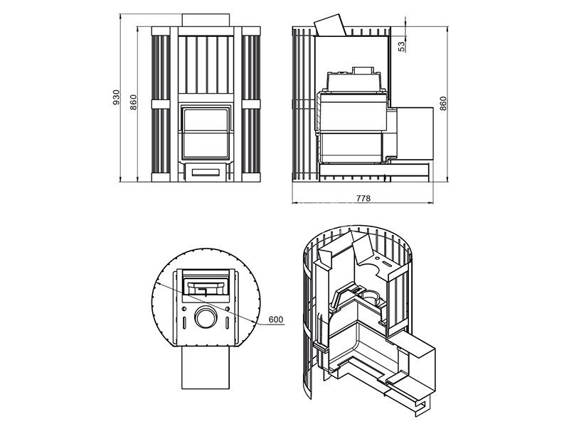 Вес камней в закрытой каменке: 30 кг