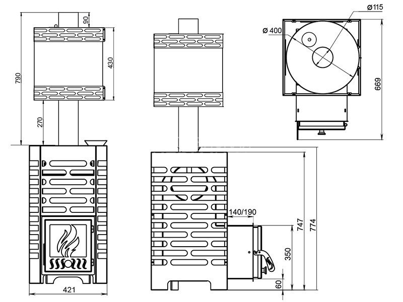 Материал закрытой каменки: нержавеющая сталь AISI 430