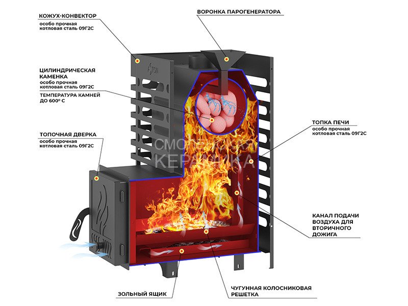 Материал закрытой каменки: особо прочная котловая сталь 09Г2С