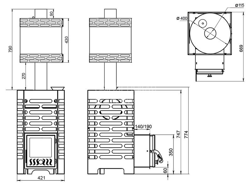 Диаметр дымохода, мм: 115