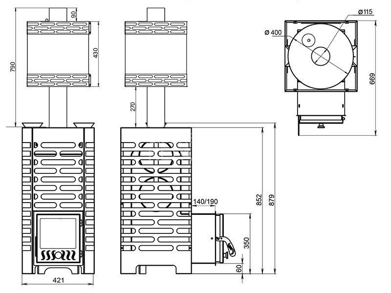 Материал закрытой каменки: нержавеющая сталь AISI 430
