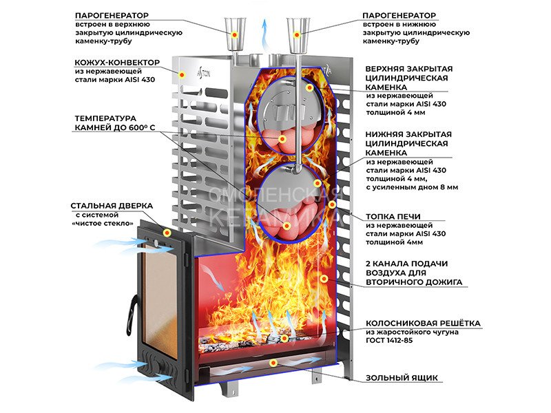 Материал закрытой каменки: Нержавеющая сталь AISI 430