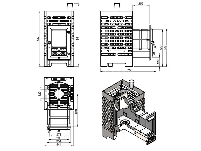 Толщина закрытой каменки: 3 мм