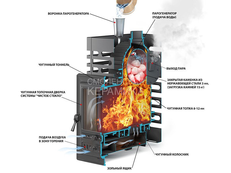 Вес камней в закрытой каменке: 15 кг