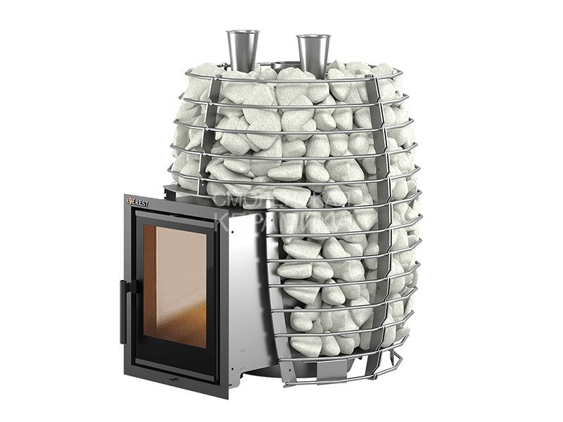Нержавеющая сталь толщиной 24 мм, интегрированная каминная дверка, системы чистое стекло, вторичный дожиг, неповторимый дизайн и звук вьюги. Всё это - про новую печь для бани Эверест Steam-Нeat 24 INOX.