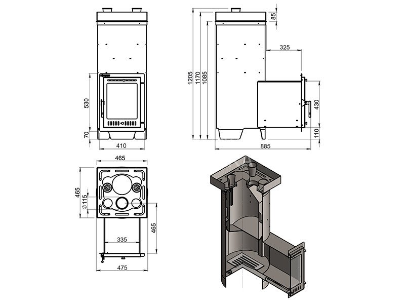Диаметр дымохода: 115 мм