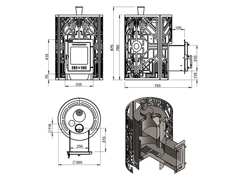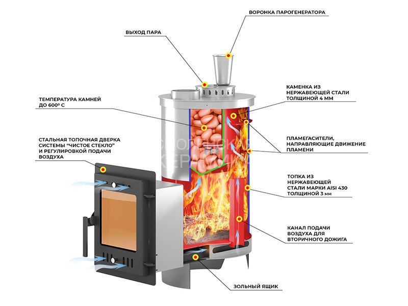 Материал закрытой каменки: Нержавеющая сталь (AISI 430)