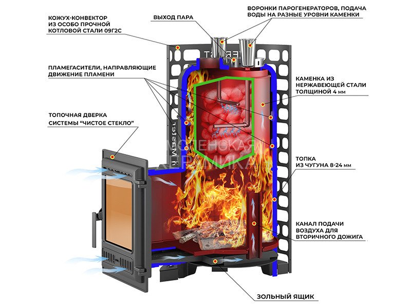 Материал закрытой каменки: Нержавеющая сталь (AISI 430)