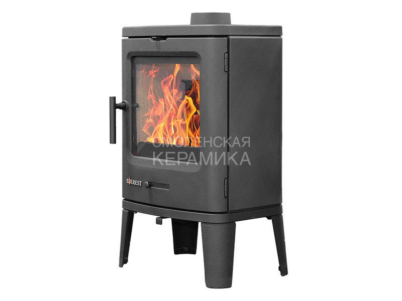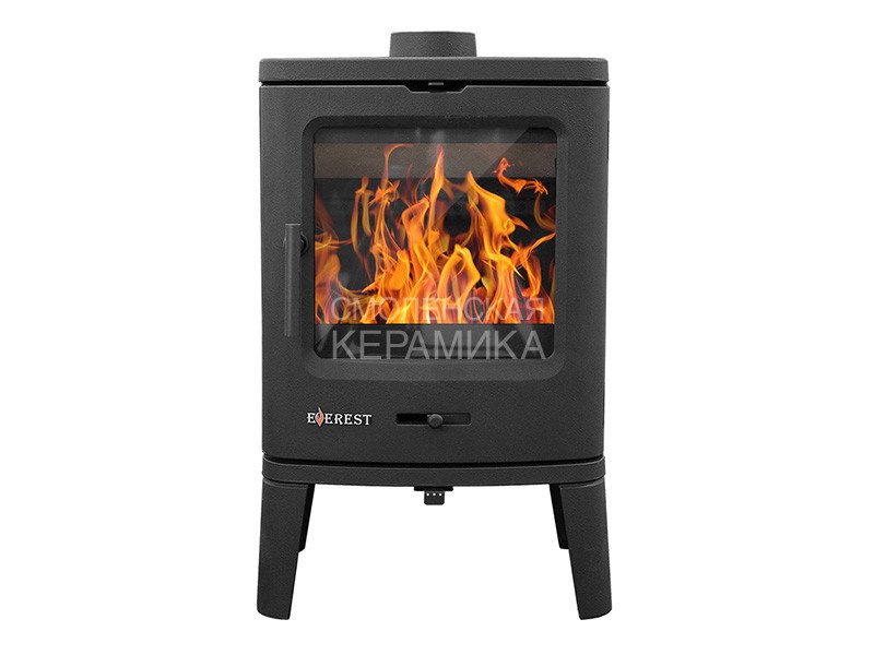 Компактная, стильная и мощная новинка от компании Everest. Печь-камин изготовлена из качественного жаростойкого чугуна ГОСТ 141285 с толщиной стенок 6-8 мм. Модель мощностью 7 кВт, рассчитана на обогрев помещений объёмом до 140 м³. Печь-камин имеет вермикулитовый пламегаситель. На чугунной дверке предусмотрена ручка с регулировкой силы прижатия. Топка усилена вермикулитовыми плитами с системой двухуровневого вторичного дожига. С помощью этой функции по специальному каналу поступает воздух, который нагревается при прохождении между топочной камерой и задней стенкой корпуса. Далее нагретый воздух через дефлектор поступает в топку, перемешивается с газами - продуктами горения, чем вызывает повторное возгорание. Регулировка этой системы, осуществляется заслонкой, расположенной в нижней части печи-камина. Регулировка подачи воздуха в колосниковую зону осуществляется заслонкой, расположенной на двери. В верхней части расположена ручка регулировки системы чистое стекло, которая помогает оставаться стеклу чистым отсе