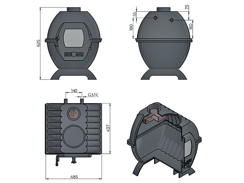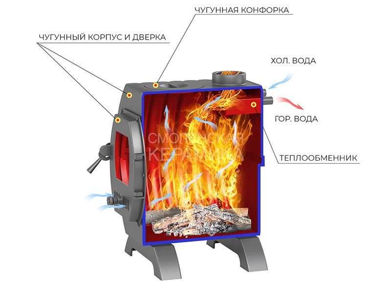 Топка состоит из двух чугунных элементов толщиной не менее 12 мм.