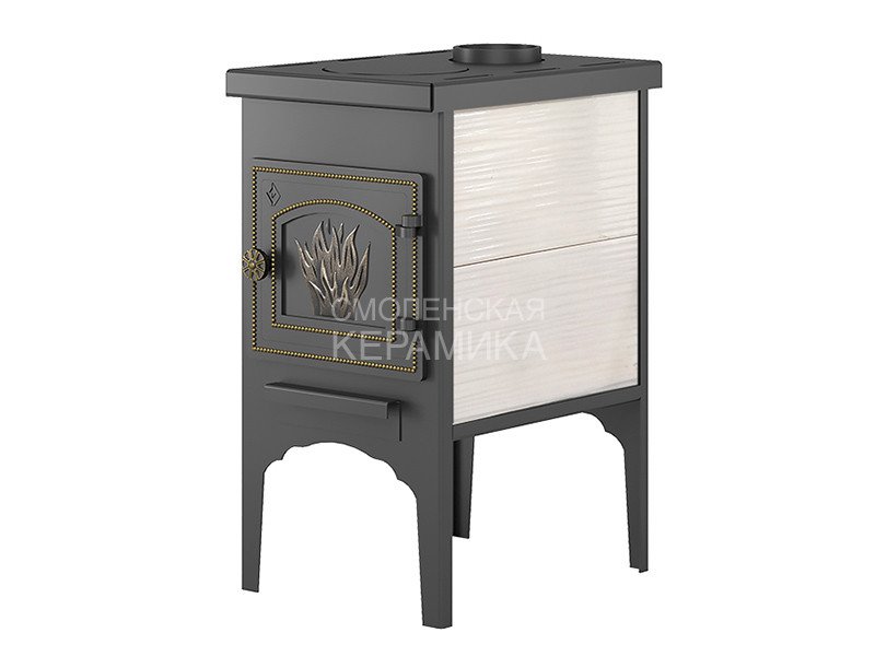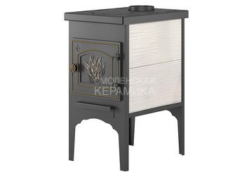 Верхнюю горизонтальную поверхность можно использовать для приготовления пищи. Печь укомплектована чугунным колосником и чугунной негерметичной дверцей Везувий ДТ-4. Печь облицована керамической плиткой для лучшего распределения тепла. Ширина: 330 мм