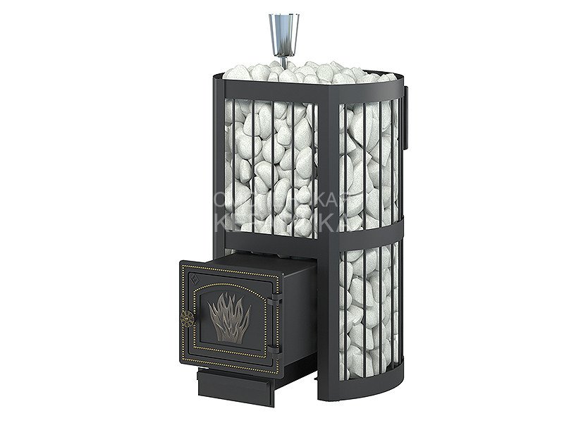 Банная чугунная печь Ураган Стандарт 12 (ДТ-3) укомплектована чугунной негерметичной дверцей Везувий ДТ-3. Закрытая каменка изготовлена из стали. Конвекционно-вентилируемый кожух "Стандарт" изготовлен из металлического прутка диаметром 6 мм, окрашен черной термостойкой краской.