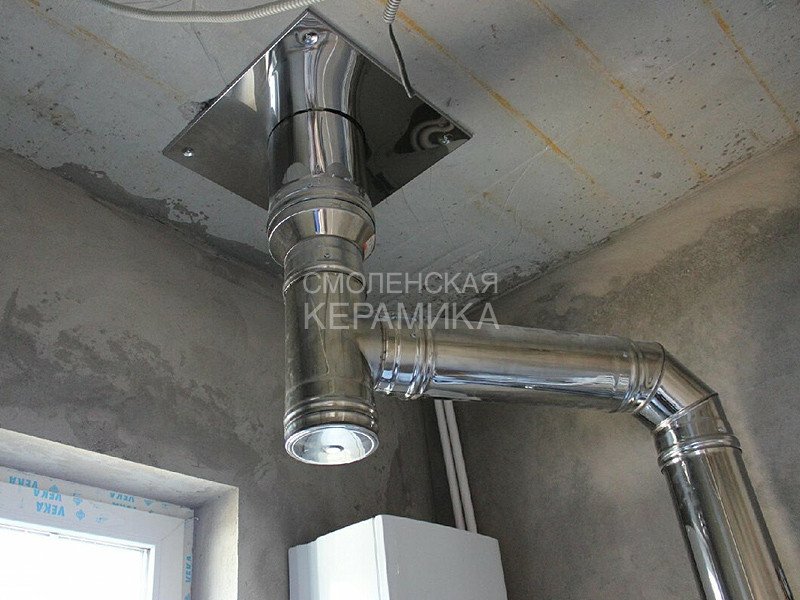 монтаже каналов вентиляции. Одностенные дымоходы следует размещать только внутри отапливаемых помещений, при