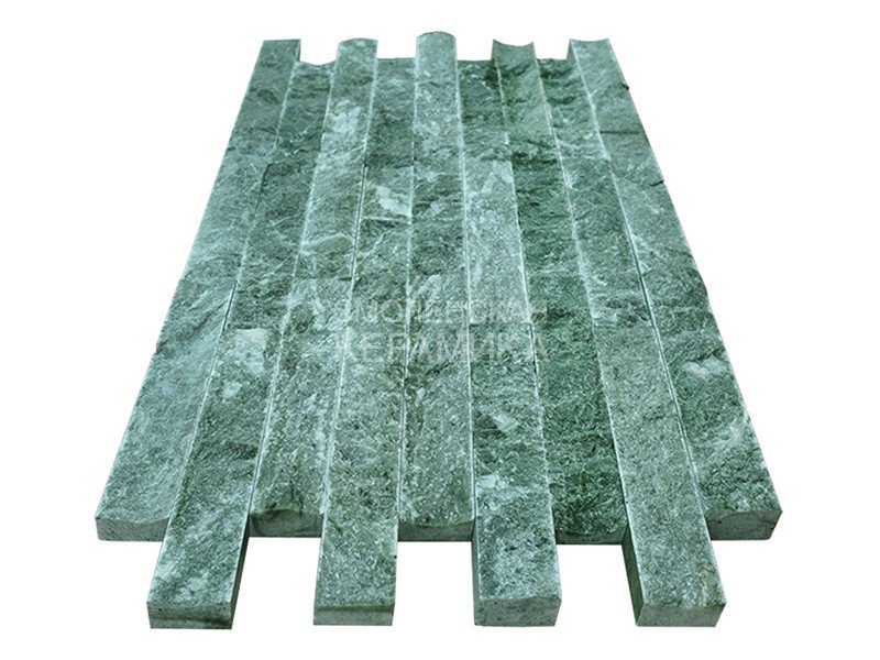 Облицовочная плитка из натурального камня(змеевик) используется для декоративной отделки стен в парном помещении бани а также для отделки портала со стороны комнаты отдыха. Крепится на подготовленную основу с помощью жаростойкой мастики.(м.кв/125 шт.)