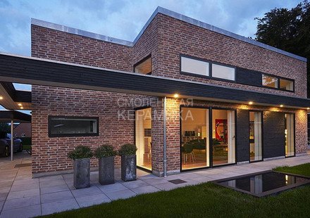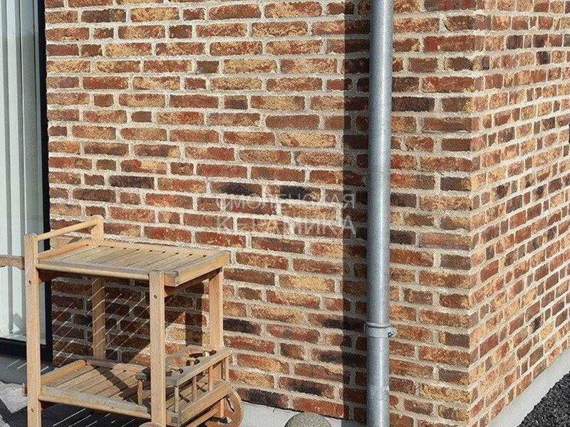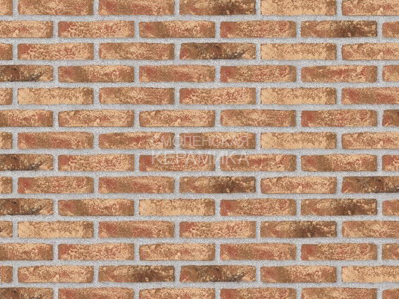 Полнотелый кирпич ручной формовки RT 452 Bunt Gotik Handform ziegel из серии RUSTICA производится на заводе RANDERS TEGL в Дании форматом и размером - ECO-DNF 228X50X54 мм, имеет выраженный терракотово-оранжевый цвет с переливом и черными пятнами угольного подпала. Применяется при возведении фасадов зданий, заборов, а так же в оформлении печей, каминов. Формат с приставкой ECO - является экономичным, это тонкий кирпич, т.е. половинчатый или распиленный на две части.